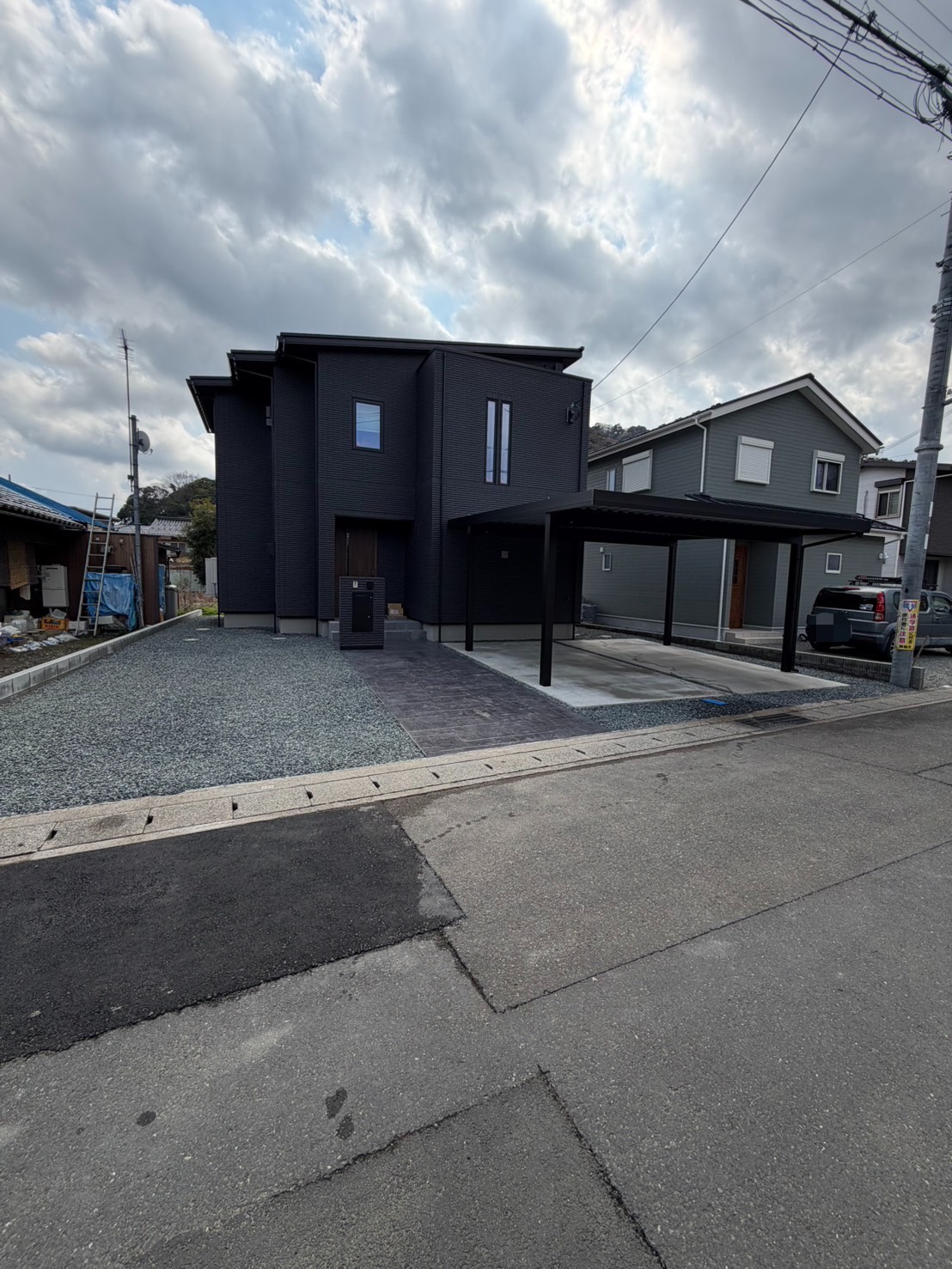 今回の外構は、建物の色味に合わせた統一感のある外構デザインです。